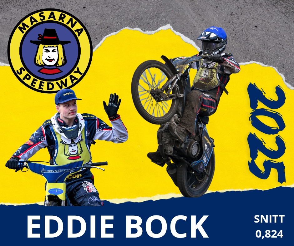 Masarna Speedway är glada att kunna meddela att Eddie Bock fortsätter sin resa med klubben även under säsongen 2025. Eddie, en av våra lovande lokala talanger, blir en viktig del i vår satsning mot att bygga ett starkt lag med många förare från närområdet.